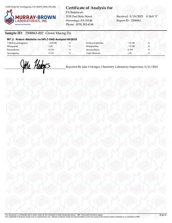 Green Maeng Da comes from the leaves of the Mitragyna speciosa tree. This strain uses green-veined leaves that many kratom users prefer for daily use.